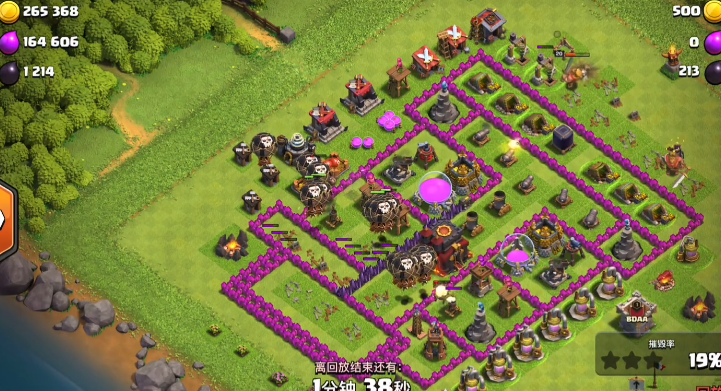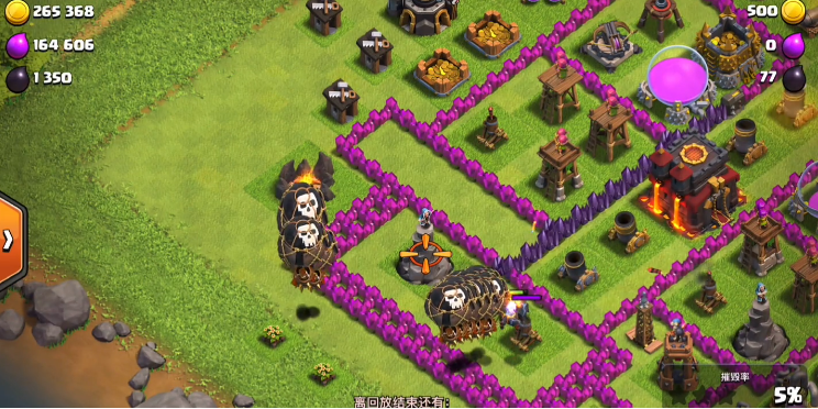 敌人防御配置同样有固定套路,部落城堡援军是核心反制点,低本常用龙宝、法师、气球,中高本优先冰人、女巫、熔岩猎犬、英雄猎手、超级亡灵,冰人+女巫组合能拖延进攻节奏、消耗法术,熔岩猎犬+猎手克制天女与空军,英雄猎手专门针对敌方英雄;核心防御建筑方面,单头地狱塔锁定高血量单位(石头人、泰坦、女王)持续高伤,多头地狱塔范围输出克制集群部队(矿工、野猪、气球),天鹰火炮大范围AOE清场,投石炮、X连弩、法师塔、防空火箭分层布置,覆盖地面与空中;陷阱搭配骷髅陷阱、隐形弹簧、巨型炸弹、搜空炸弹,骷髅陷阱引援、分散部队,弹簧针对巨人、皮卡、泰坦,巨型炸弹炸集群地面兵,搜空炸弹克制气球、雷龙,陷阱多布置在进攻必经之路、核心防御周围与大本附近,最大化限制进攻路线。
