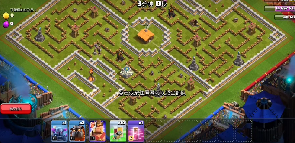 实战出兵摆放有着严格细节讲究,进攻开局优先观察敌方防空火箭分布,按照防空位置分路下放天狗,每一处防空点位放置一只天狗拉扯火力,尽可能覆盖箭塔、法师塔、地狱之塔等周边对空防御,提前探清空中黑雷陷阱,避免后排气球被瞬间秒杀,天狗落地吸引仇恨之后,再分组排布气球兵跟进输出,三只为一组有序下放,不要大范围一字乱划,依靠天狗前排承伤,让气球精准拆除防空建筑,大幅降低空军战损。