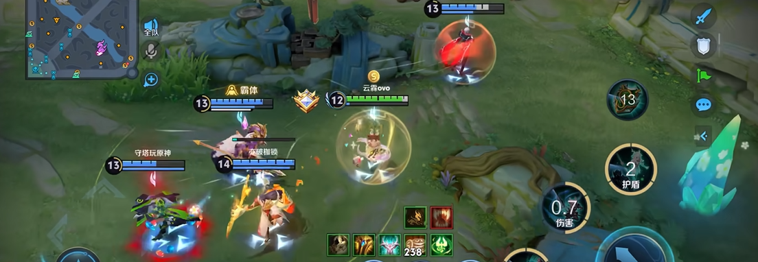 刷盾技巧是玩好瑶的关键!附身状态下要注意队友血条旁边的黄色护盾值,快消失时主动跳下来,这样大招冷却只要6秒。如果等护盾被打爆,冷却时间会翻倍到12秒。记得多用一技能探草丛,二技能自动追踪敌人时别站太近,保持安全距离才能持续给队友帮助。铭文选择上推荐红色宿命+蓝色调和+绿色虚空,这套组合提供最大生命值、移速和冷却缩减,完美契合瑶的需求。如果想强化前期续航,蓝色可以换成长生;追求极致冷却的话,绿色怜悯也是不错的选择。