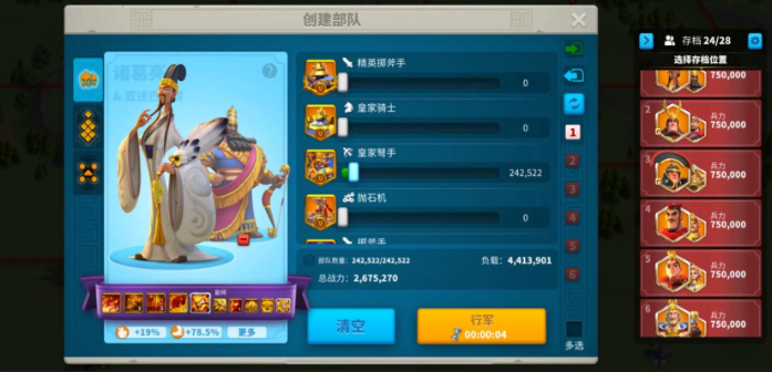 分批带兵的核心在于合理分配兵力并灵活运用游戏机制。提升武将等级是增加单支部队带兵上限的基础操作,每次升级不仅提高带兵数量,还能增强属性。武将技能和天赋中也有增加部队容量的特殊效果,尤其是后期百分比加成的天赋会让带兵量产生质变。主城等级是另一个影响带兵规模的关键因素,主城升级,部队容量会显著提升,同时解锁更多建筑和科技。军事科技中的兵力扩编和战略动员等研究项目能直接增加带兵量,联盟科技中的协同加成同样不可忽视。