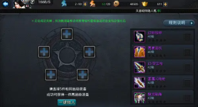 装备合成是获取高阶装备的主要途径,但需注意不同阶段的成功率差异。白装升绿装成功率为100%,绿升蓝降至50%,蓝升紫为45%,紫升金则仅有40%左右。合成失败会返还部分金币和材料,但已镶嵌的灵石不会退回,因此在合成高阶装备前需谨慎评估资源投入。仙魔悬赏、修罗血战等活动能稳定产出特定装备部件,相比完全依赖合成更具性价比。天赐神兵抽奖虽有机会直接获取珍稀装备,但碎片兑换体系才是长期稳定的获取渠道。