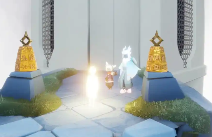 穿过光点区域后,会遇到一个需要双人协作的石门。如果暂时找不到伙伴帮忙,可以尝试单人技巧:先长按角色发出呼喊吸引蝴蝶,等蝴蝶聚集时松手,借助它们的升力直接飞跃到石门上方。不过要注意控制方向,飞到顶部山洞分支点时及时调整视角,那里藏着一个小金人。拿到小金人后继续往上,就能抵达隐藏地图的最高处,俯瞰整个晨岛的风景特别壮观。