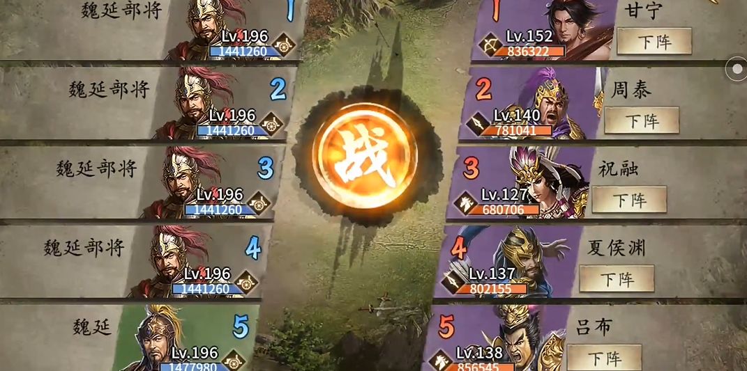 貂蝉开场直接放战法,甘宁紧随其后打爆发,夏侯渊等第三将出场时再封技能。周泰全程平砍,留战车伤害给魏延;关羽觉醒技一定要留到最后,等魏延剩三排兵时再放。如果技能顺序乱了,很容易被敌方反打,所以得多练几次熟悉节奏。