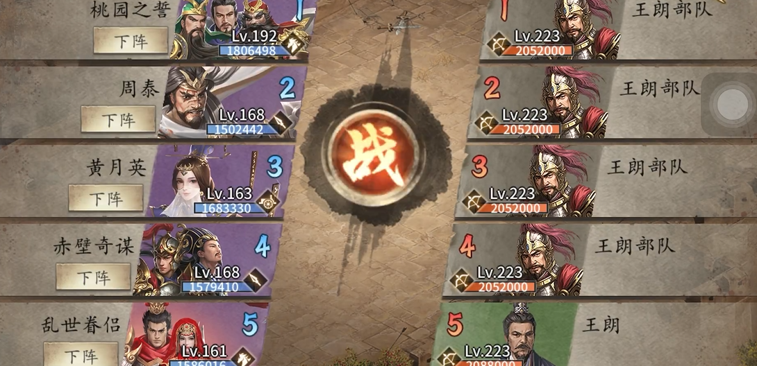 通关223级王朗副本的核心在于合理配置武将阵容、战车分配及战法释放时机。推荐首发武将选择甄宓,其战法能有效削弱敌方前排战车,为后续输出创造有利条件。紧接着派出喷火觉醒的魏延,搭配副将司马懿形成稳定消耗组合,虽然反制战法概率不高,但能持续压制敌方兵力。第三个位置建议留给觉醒关羽,需特别注意战法释放时机,优先使用撞击破甲而非对战车单位施放,避免浪费输出机会。