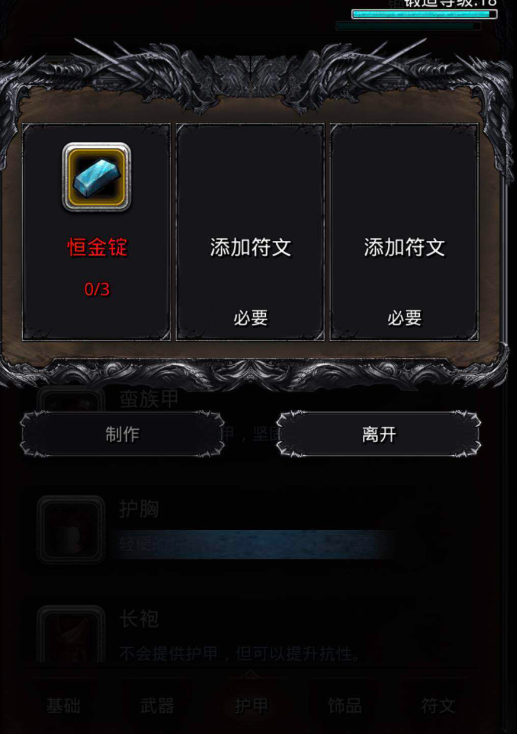 需重点打造恒金锭、铁壁符文等高级材料,制作双铁臂流血甲等抗性装备。工坊酒馆双30级与英雄5星60级是基础门槛,可通过刷图积累资源。竞技场积分可兑换牧师锤子与铁臂符文,而裂隙、副本等玩法能补充稀有材料。资源管理需优先保障金币与魂的储备,避免后期发展受阻。