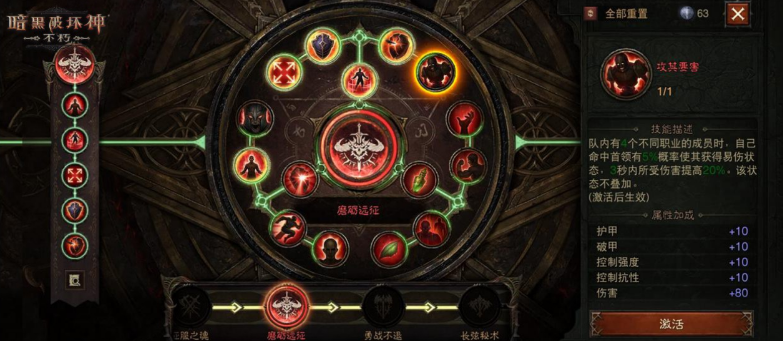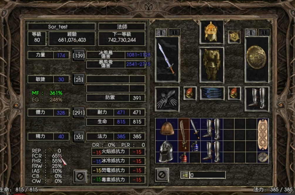 冰系技能优先加满暴风雪、寒冰弹、寒冰球及寒冰专精,冰川之枪尽量加点,冰封甲和冰封球各1点即可。闪电系仅需1点静电力场、心灵传动和传送,火焰系点1点暖流。在力量敏捷满足装备需求后,剩余属性全加生命,确保生存能力。装备成型后,暴风雪伤害可达1万级别,施法速度达到105%档位,火电毒抗性均能满值,实现输出与防御的平衡。