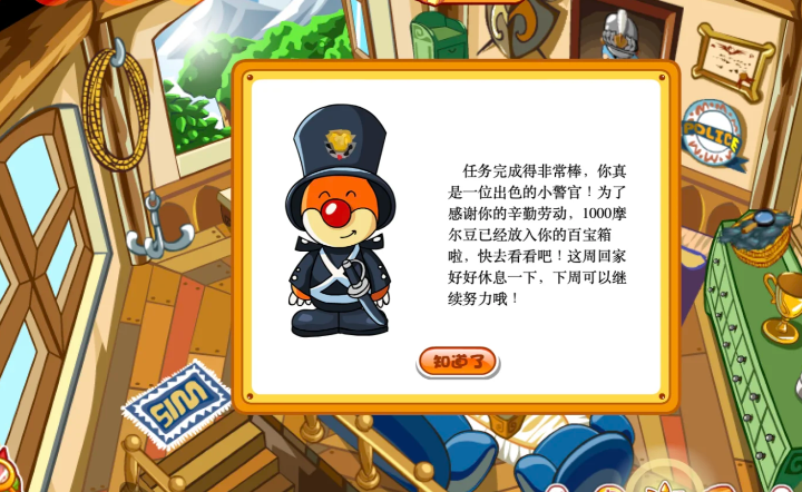 晋升精英警官的小摩尔可以挑战古董失窃案任务。这个需要破解密码箱,密码藏在发明屋墙上的符号里,把图形对应成数字就能打开柜子拿手电筒。之后去餐厅用扫帚找电闸,反复调整直到所有灯变红就能获得培根披萨。最后把披萨送给淘淘乐街的金发男孩,整套流程虽然复杂但超有趣,完成后会解锁更高级的警官权限。