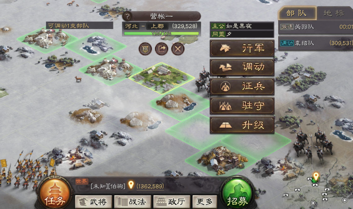 临时征兵功能让营帐成了持久战的补给线。把伤兵队伍调入营帐后点征兵按钮,就能就地补兵。营帐征兵消耗的铜币比主城更多,速度也只有主城的五分之一左右,而且同一时间只能为一支队伍服务。所以它更适合紧急补兵或辅助主城征兵,别完全依赖它做主力补给站。