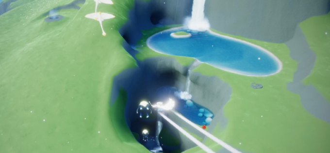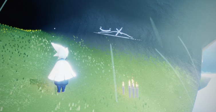 第四个常跟三鲸尾雕像有关,线索壁画常出现在大编钟附近的山壁上。看完壁画一转身,看到那三条鲸鱼尾巴没?飞到雕像跟前喊一嗓子或者点个手掌图标,编钟碎片就现身了。第五个编钟跟沉船挂钩,得仔细分辨——不是主岛上搁浅的那艘大破船,而是岛内水域里的小沉船,看到幽幽绿光飘着的地方,靠近就能收集。第六个最考验飞行技巧,它在云中高处的瀑布边上。线索壁画常在水母洞深处,看完就得想办法往圣岛山顶冲。自己飞的话多带点光翼,能量管够;或者聪明点,在山顶召唤只大鲲驮咱们稳稳飞上去,省心又省力。