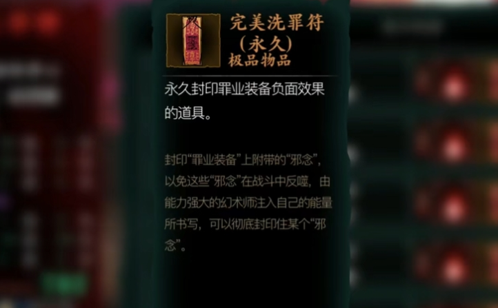 用于净化罪业装备的负面效果,帮助玩家提升角色战斗力。罪业装备在击败罪体后获得,虽然属性强大,但附带不可清除的负面 buff,如反噬或减益状态。洗罪符能暂时压制这些效果,让装备发挥全部威力,是平民玩家强化角色的必备物品。玩家需优先理解其重要性,并在日常游戏中注意积累,以高效推进剧情和挑战。