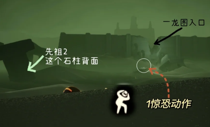 光遇里那个会缩成一团发抖的躲藏害怕先祖,它老早就藏在墓土那张灰蒙蒙的地图里啦,位置就在大家常说的四龙图区域。具体点说,当你跑进暮土,穿过阴沉的大厅跳下悬崖,来到第一片开阔的沙地时,记得把视角转向那个破败城堡的方向。朝着城堡走,爬上沙坡后视野会突然开阔,这时候仔细瞧远处——有座断桥孤零零地立着,桥头若隐若现的小光点就是它啦!直接朝着亮光飞过去准没错。还有个更省心的法子,如果你已经解锁了遗忘方舟,直接从方舟门口往前飞,看到地上冒红光的地方落下去,它正缩在那儿等着呢。