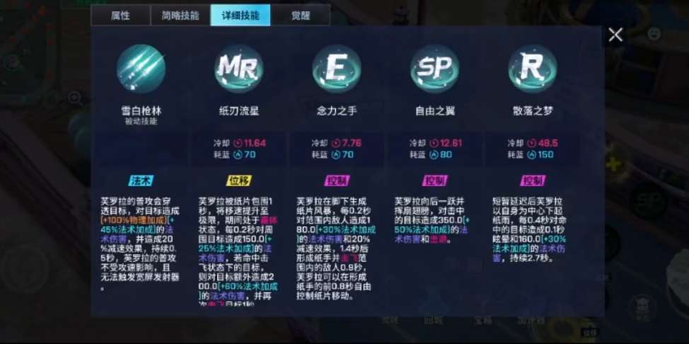 芙罗拉在非人学园中是一个灵能职业角色,集灵活、多霸体、多位移和搅局能力强于一体,她的被动技能使普攻穿透目标并造成减速效果,不受攻速影响,这增强了她的远程消耗能力。一技能提供位移攻击,附带减伤和霸体状态,能再次击飞浮空目标;二技能操控纸片风暴,形成纸手击飞敌人;三技能是小幅位移并击退目标;大招则是范围控制技能,造成眩晕和法术伤害,觉醒后延长控制时间。这些技能组合赋予芙罗拉出色的控制和高爆发输出,适合中路位置。