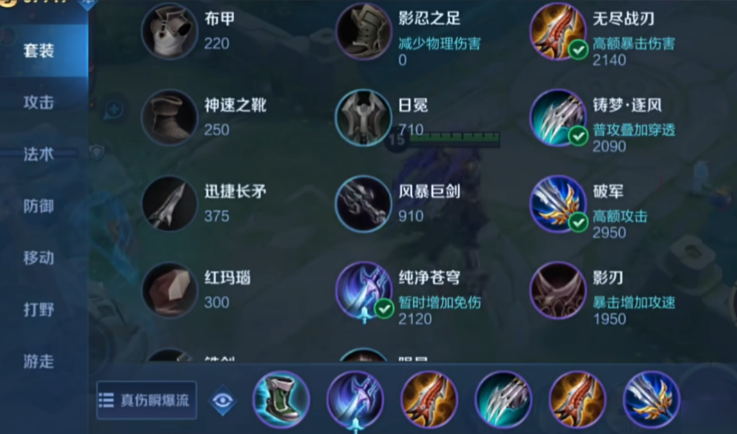 吕布的核心出装需兼顾真实伤害强化与生存能力提升。纯净苍穹提供主动减伤和攻速加成,配合大招进场可有效规避集火伤害,是该英雄的核心装备之一。破军的物理攻击加成与被动斩杀效果完美契合吕布的真实伤害机制,是其输出强化的关键装备。防御装备选择上,抵抗之靴的韧性加成能减少受控时间,反伤刺甲或极寒风暴则针对物理型阵容提供高额护甲与反制效果。后期补充魔女斗篷应对法术威胁,暴烈之甲被动受击增伤的特性与持续作战需求高度匹配。名刀司命或血魔之怒可增强残局反杀容错率。