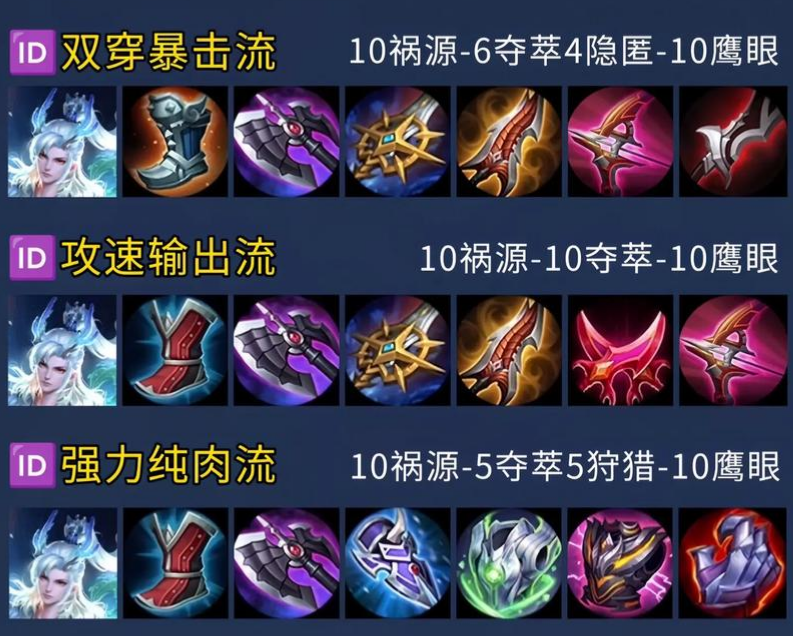敖隐的出装思路主要分为输出流和半肉流两种方案,最大化伤害或平衡生存能力。输出流以冷静之靴、暗影战斧、宗师之刃、无尽战刃为核心,搭配破晓和泣血之刃,提升普攻伤害和续航能力,适合对局中需要高爆发输出的场合;半肉流则在核心装备基础上加入碎星锤和暴烈之甲,增强防御能力,避免在团战中被瞬间秒杀,适用于敌方突进角色较多的环境。铭文搭配方面,祸源、鹰眼和狩猎的组合最为常见,能有效提高暴击率、物理穿透和移速,确保前期对线优势。整体策略需根据战场局势灵活调整出装顺序,以应对不同对手的威胁。
