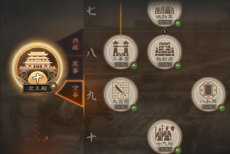 资源管理和建筑节奏直接影响开荒速度。初期石头特别缺,咱们得集中升君王殿来解锁更多功能,比如点将台出第三武将。征兵别停着,兵力恢复是持续的。屯田功能在名声值达标后一定要用,专挑高级地收益更高,但记得留足策书应对突发战斗。新手期48小时福利别浪费,这期间打地体力消耗少、撤兵返资源,正是抢进度的黄金时间。铜币先开建设队列到两个就够,战法点优先砸给主力输出技能。