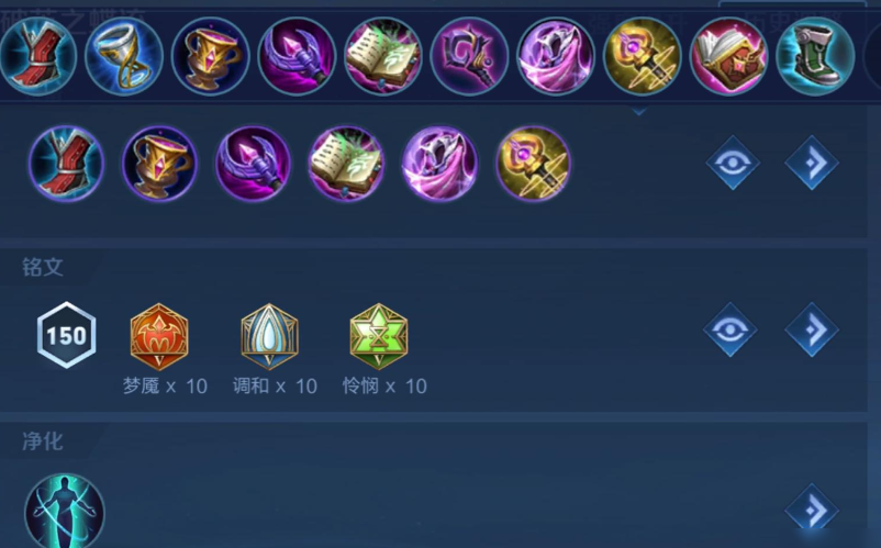 铭文这块记得带10个怜悯,绿色直接给10%冷却缩减特别省心。蓝色带调和提升续航和移速,红色用梦魇加法穿和法强。别小看铭文搭配,前期能不能稳住就看它了,满CD配合吸血效果才能让貂蝉在线上打得凶。