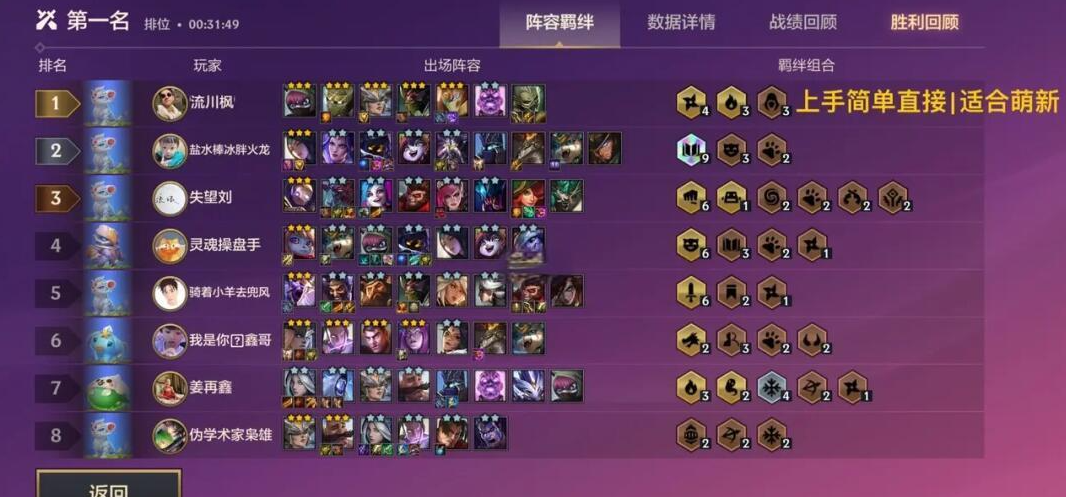 大头作为绝对主C,青龙刀和羊刀这两件回蓝装至少要保证一件,搭配大天使的法强收益最理想。不过实战中法爆、帽子甚至吸血枪也能用,两星大头比完美神装更重要。前排装备优先给稻草人,狂徒加生命值能让他更快开大,搭配日炎或龙牙顶住伤害。多余的法强装可以给提莫或格温补充输出,肉装则分配给狗熊或艾翁。伏击手套这类功能装给璐璐非常实用,能帮大头挡关键控制。