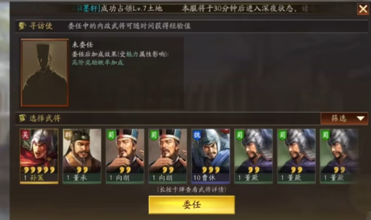 三国志战略版中魅力属性作为武将六维基础属性之一,其核心价值主要体现在内政管理、资源获取及特定战法联动层面。魅力值的高低直接影响武将在委任内政官职时的效果加成,例如寻访使、锻造官等职位需依赖魅力属性提升事件触发概率与高品质奖励获取率。高魅力武将在执行寻访、锻造等内政指令时,能显著提高稀有道具、高阶材料或特殊武将的产出效率,是资源积累的重要保障。