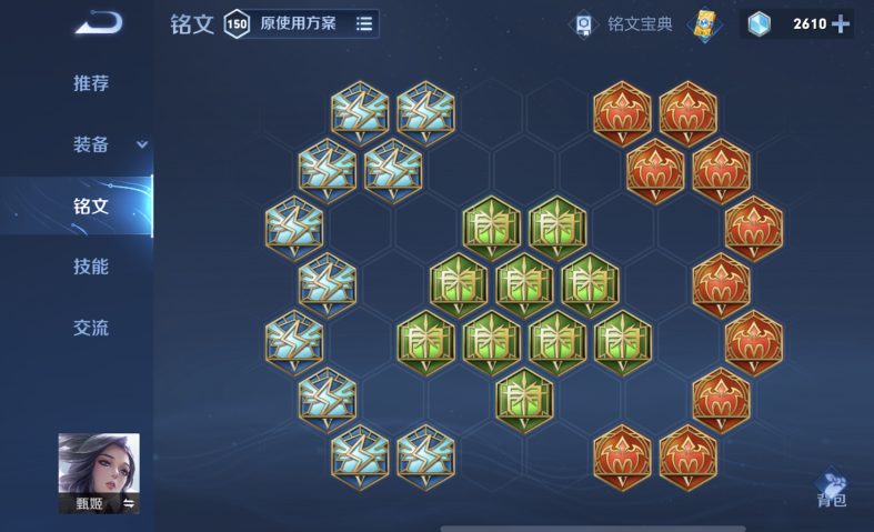 铭文搭配需强化前期对线能力与支援效率。主流方案采用红色梦魇与绿色心眼组合,合计提供法术攻击、法术穿透及攻击速度加成,确保清线与消耗的基础伤害。蓝色铭文在狩猎与调和间选择:狩猎的移速与攻速优势利于快速转线支援及技能衔接,而调生命回复与最大生命值则提升抗压容错。部分玩家亦会混搭贪婪铭文获取法术吸血,但需注意其收益低于装备吸血属性,通常不作为优先选项。整体铭文属性应服务于快速清线后游走支援的节奏需求,同时弥补甄姬基础移速较低的短板。