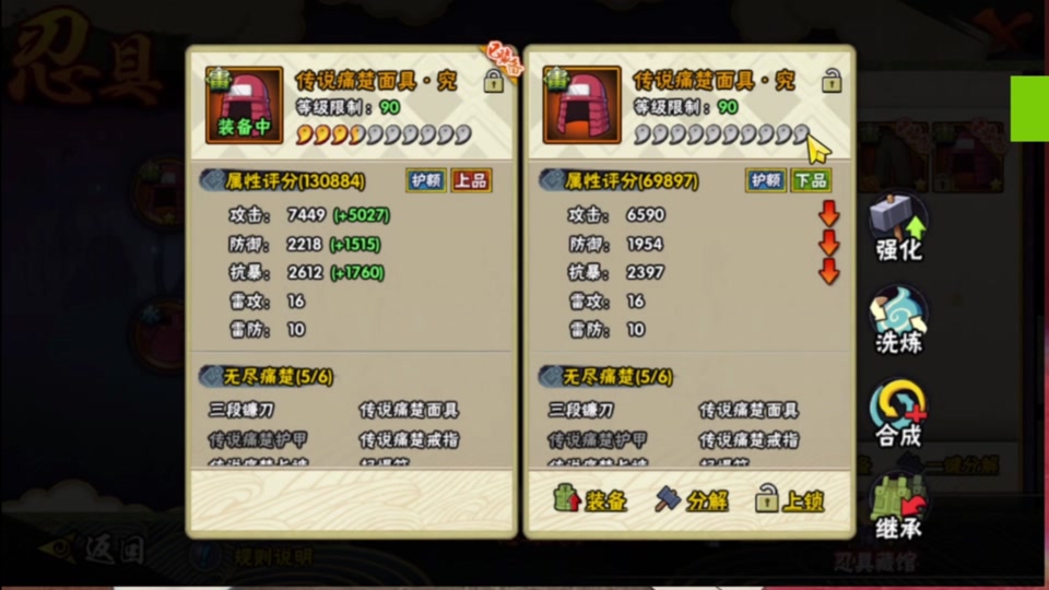 终极决策需平衡即时收益与长期价值。分解的本质是资源循环手段,适用于淘汰属性低下、无套装关联的冗余品以腾出强化材料。但对于能构成元素协同或套装雏形的忍具,即使暂未装配也应保留发展潜力。实际操作中建议建立动态评估机制:新获高阶忍具时同步检视库存,仅分解确定被替代且无复用场景的旧装备。