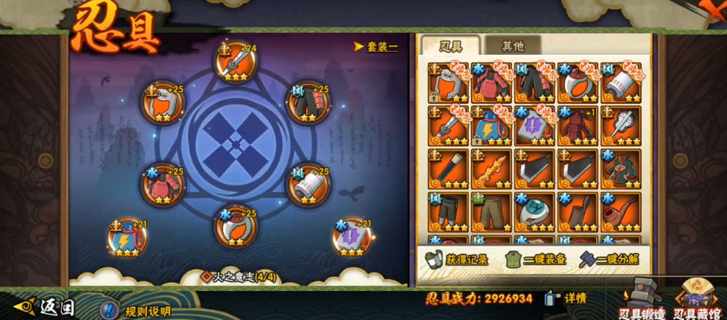 强烈推荐优先使用忍具藏馆功能预览全套装备属性分布,系统化比对重复项与低效单品。对于能激活套装效果的忍具(如痛楚套装、神速套装),即便单件属性平庸也应优先保留,因集齐套装触发的全局增益远超散件价值。元素一致性亦不可忽视,同属性忍具组合能通过元素攻防差提升实战输出效率。背包容量充足时,建议暂缓分解争议性装备,待后期战力体系成型后再做决断。