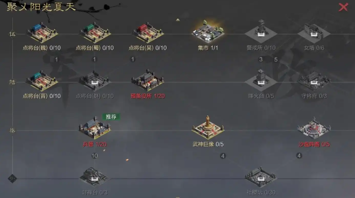 校场升级到特定等级还会解锁额外的征兵队列,这能显著优化你的征兵和作战节奏。例如校场达到三级和五级时分别会增加征兵队列,让你能够同时训练更多兵力,减少等待时间,从而更快地恢复部队战斗力。在资源紧张的开荒阶段,建议优先将校场升至三级,这样可以在保证部队数量的同时,不过度消耗资源。升级过程中如果资源不足,可以通过完成主线任务、扫荡低级土地或利用政令来加速资源积累。需校场升级需要一定时间,除非紧急情况,否则建议自然等待以节约玉符,将宝贵资源用在更关键的节点。