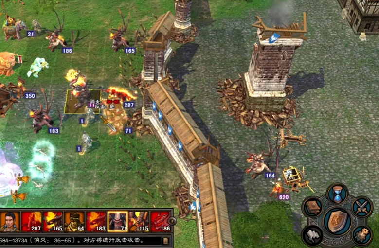 针对不同势力的目标城堡需要采用截然不同的攻城策略。在指挥兽人英雄攻击地狱势力的城堡时,关键在于保护己方的投石车,应将其设置为防御状态以避免误伤城墙,反而堵住出口。你需要安排狂野独眼巨人这样的肉盾单位去堵住城门,优先集火消灭能够飞出来的大恶魔,然后再慢慢处理被卡在城门内的地狱猎犬。而在指挥圣堂势力的人族部队攻城时,专家级的光明魔法至关重要,战斗伊始就应施展群体飞弹弹射来消耗敌军,并必须持续使用驱散魔法来反制敌方英雄对你部队施加的傀儡大师等控制法术。