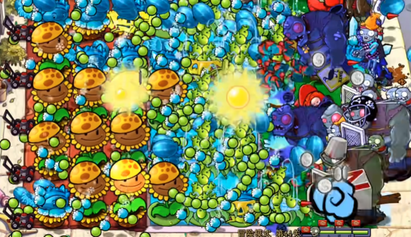44关的过关关键在于针对雪橇僵尸的快速突进,构建一个以减速和控制为核心的防御体系,并灵活运用磁力坚果来应对重型僵尸。开局阶段需要快速奠定经济基础,优先在场地最左侧种植一整排阳光向日葵来保证阳光的持续产出。在水路区域要及时铺上睡莲,并在睡莲上种植豌豆睡莲提供初步火力,尽早在水路放置至少一株寒冰香蒲对水面敌人进行持续减速,为后续布阵争取时间。初期资源有限,稳定发育是首要任务。
