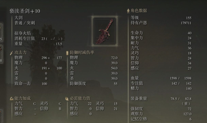 亵渎圣剑是密使后期的一把顶级选择。它属于大剑类武器,拥有强大的冲击力和失衡能力,其专属战技掠夺火焰不仅能造成范围火焰伤害,还能从命中的敌人身上吸收生命值,提供了优秀的续航。这把武器的火属性伤害和吸血效果本身就很出色,主加信仰属性可以大幅提升其战技伤害,与密使的力信流派构建完美契合,是能一直用到通关的强力武器。