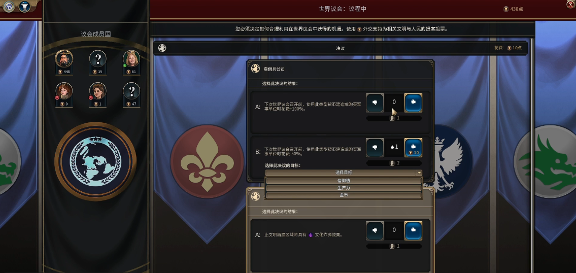 有时候咱们已经和其他文明宣布了友好关系,但后来又想开战。这时候直接宣战会带来严重的外交惩罚,其他文明会集体谴责咱们。这里有几个巧妙的方法可以绕过限制,既能开战又尽量减少负面影响。如果目标文明正在和其他文明打仗,咱们可以赶紧和那个文明结盟,最好是军事同盟。这样就能名正言顺地加入战斗,不会因为背刺而红脸。不过这个方法需要时机,不是每次都能碰上。世界议会开了之后,如果目标文明正在打仗,咱们可以援助它的对手,触发紧急状态议案,然后推动议案通过,这样就能合理合法地开战了。